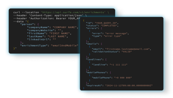 Integrating a data enrichment API is simple – most solutions, like Surfe’s, plug right into your existing sales stack. Whether you use a CRM, LinkedIn, an outbound automation tool, or all of the above, a good API will fit right into your workflow. Once connected, it automatically updates and enriches contact and company data, reducing manual research. Many APIs also allow for custom workflows, meaning you can set up specific triggers for enrichment, prioritize high-value leads, and automate prospecting.