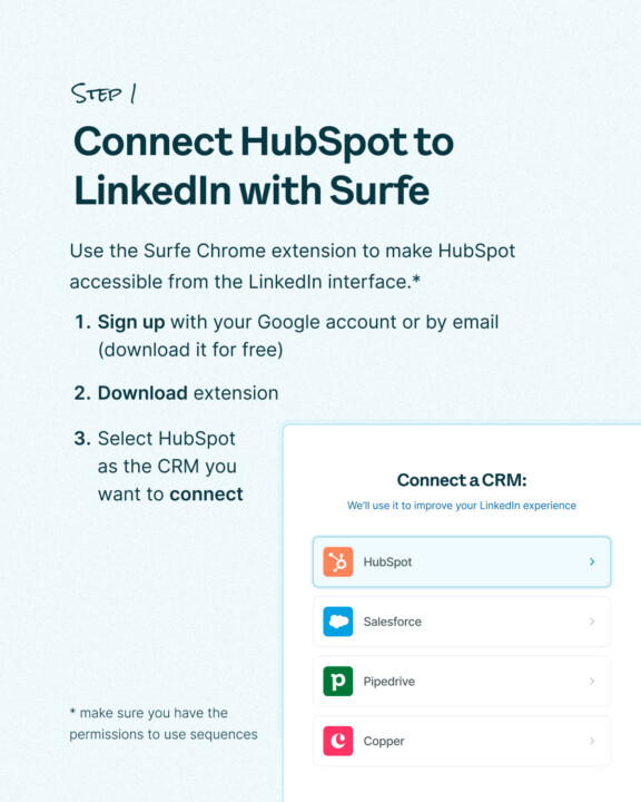 Let’s say you’ve found the perfect lead on LinkedIn, and moved all their details into HubSpot. Before Surfe, you’d then have to click around to add the contact to the sequence. After Surfe, you can do it directly from LinkedIn. Here’s how.