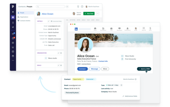 With Surfe’s Chrome extension, you can add and enrich contacts from LinkedIn directly into Pipedrive without leaving your browser.