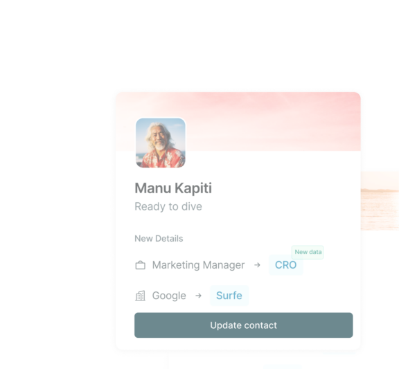 Surfe is the only sales tool that tracks contact updates daily. We review over 2 million profiles each week to keep your data accurate, notifying you instantly when one of your contacts moves to a new role.