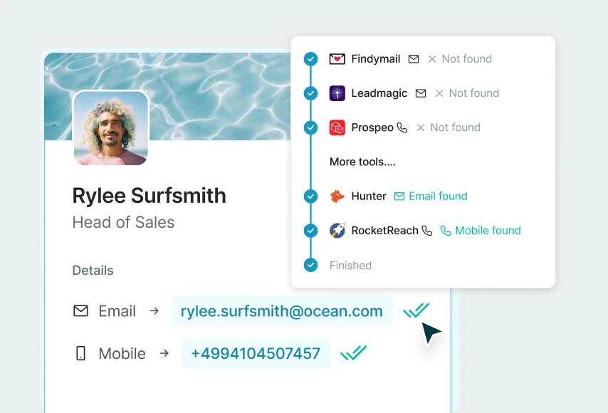 By using Surfe’s waterfall enrichment, we went to an average find rate of 90% on contact data.