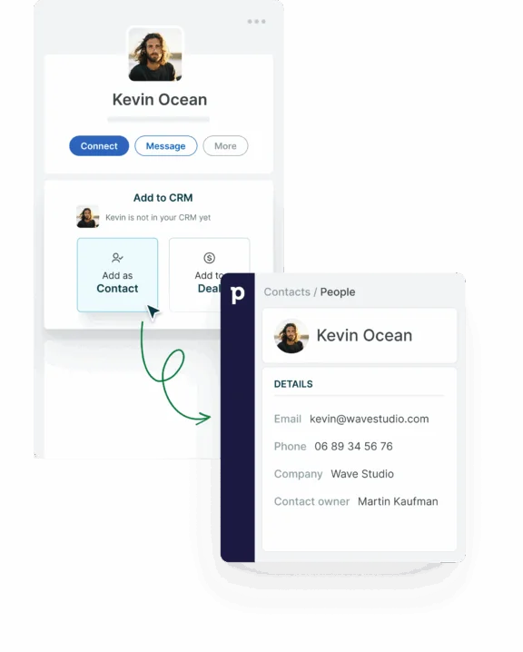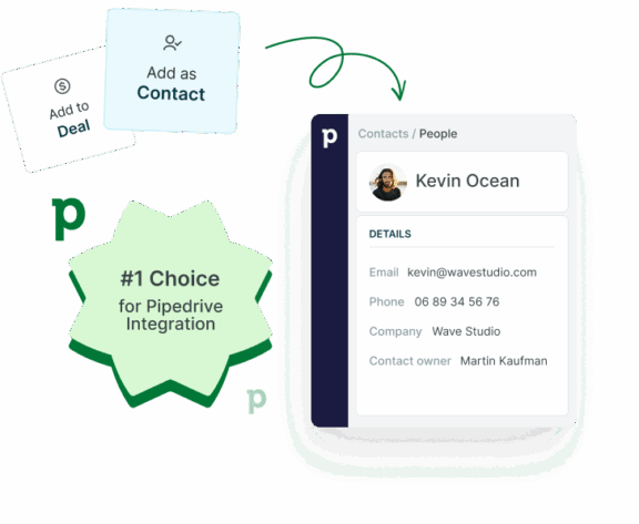 Never manually add contacts to Pipedrive again. One click and all contact or company data is automatically migrated into Pipedrive.