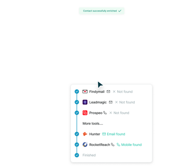 Surfe’s Waterfall Enrichment solves this by combines 15+ contact databases into one platform, and we intelligently choose the most accurate, and suitable source. Having enriched over 500 million B2B contacts we’ve gotten pretty good at it. If we don’t find a match, we search the next until we find valid contact data.